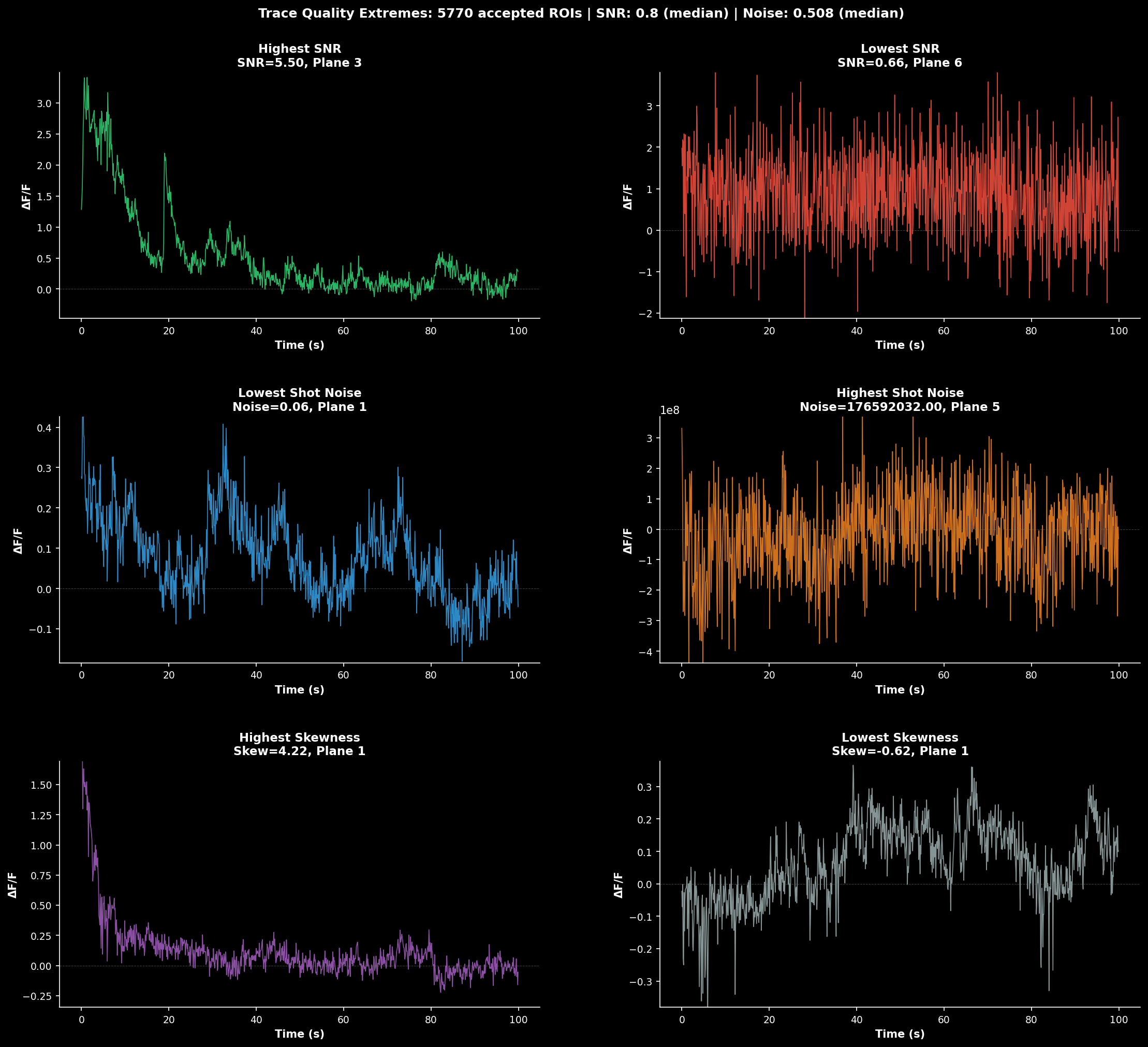 For a comparison of how different pipelines (CaImAn, Suite2p, EXTRACT) handle ΔF/F calculation, see Pipeline Comparison.